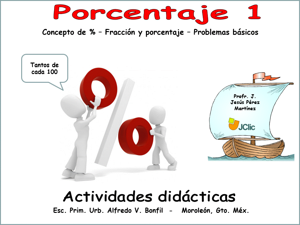Paquete de actividades para trabajar problemas de porcentaje básicos en base al significado de la expresión "Tantos de cada 100". Se hace un acercamiento a las diversas maneras de expresar el porcentaje: con fracción, decimal, frecuencia relativa y con el símbolo %.